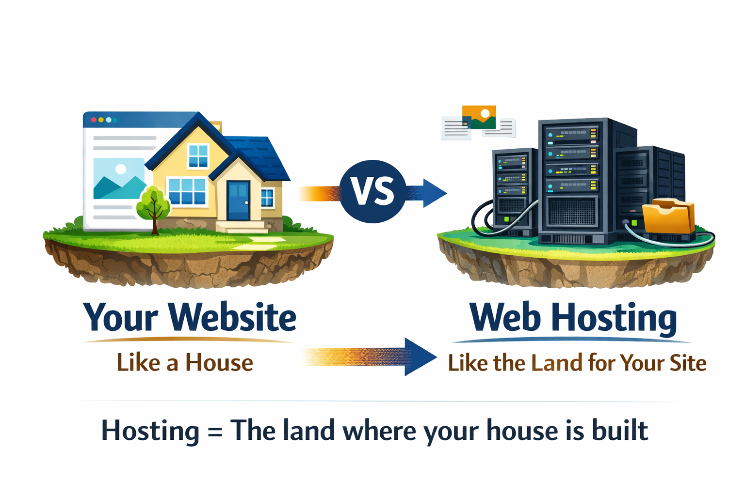 Hosting = the land where your house is built